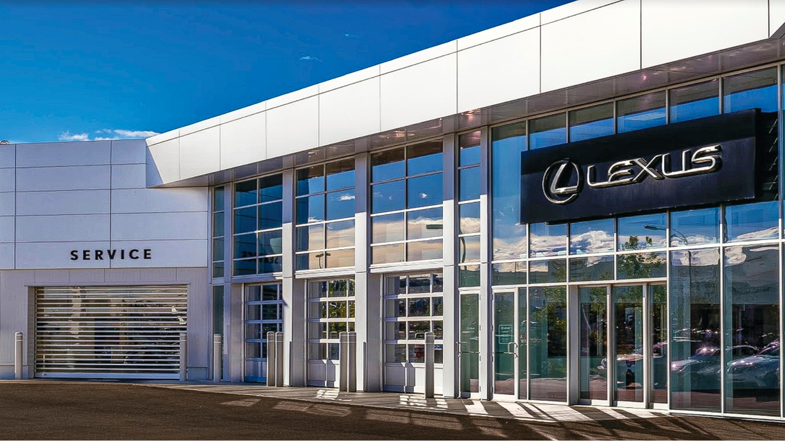 Lexus of Royal Oak an open-concept showroom, 18-bay service shop and 8-bay detailing centre, the Lexus Lounge complete with in-house nail salon and barista stations, and an upper floor for dedicated office space accessed by a radial staircase.